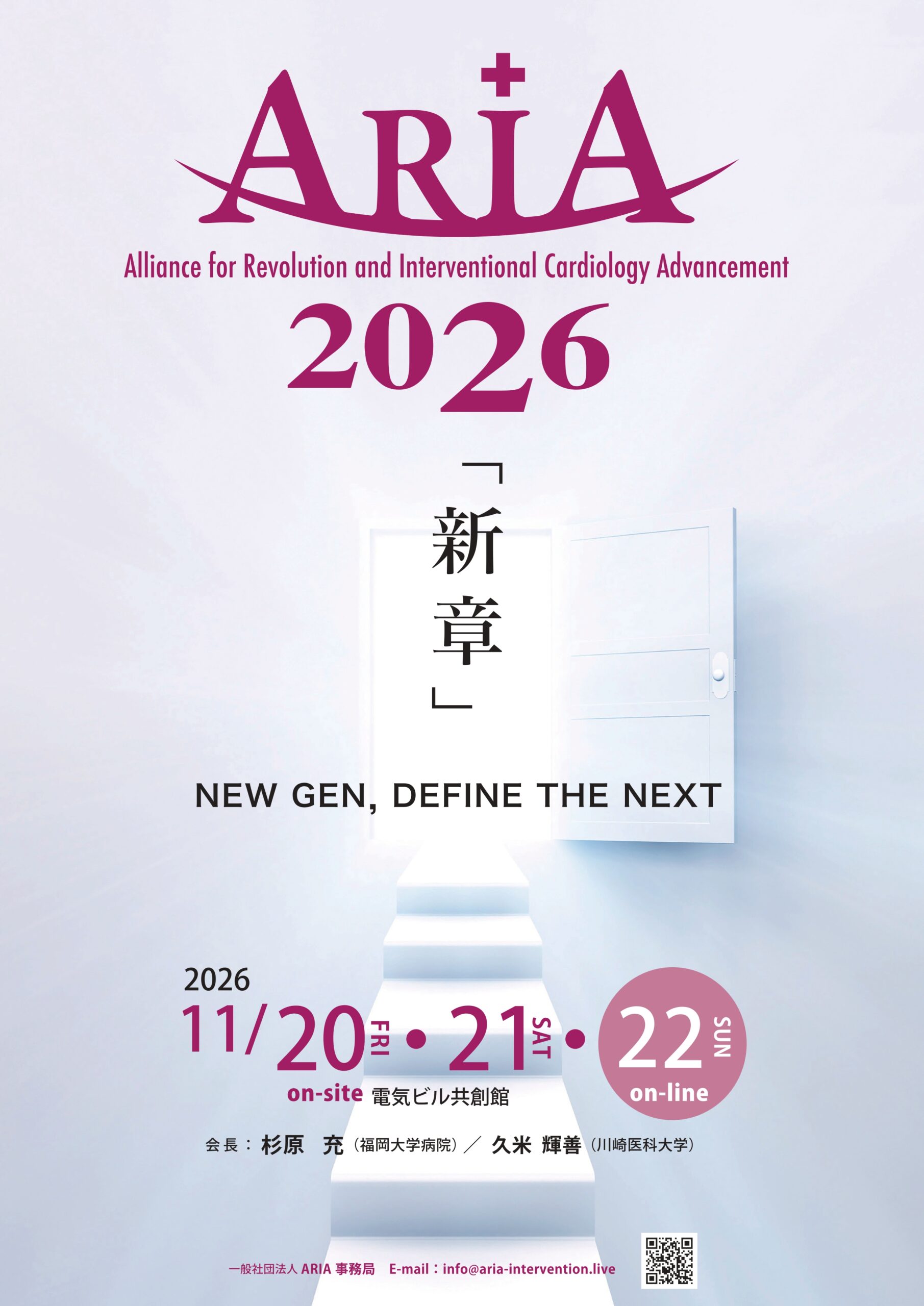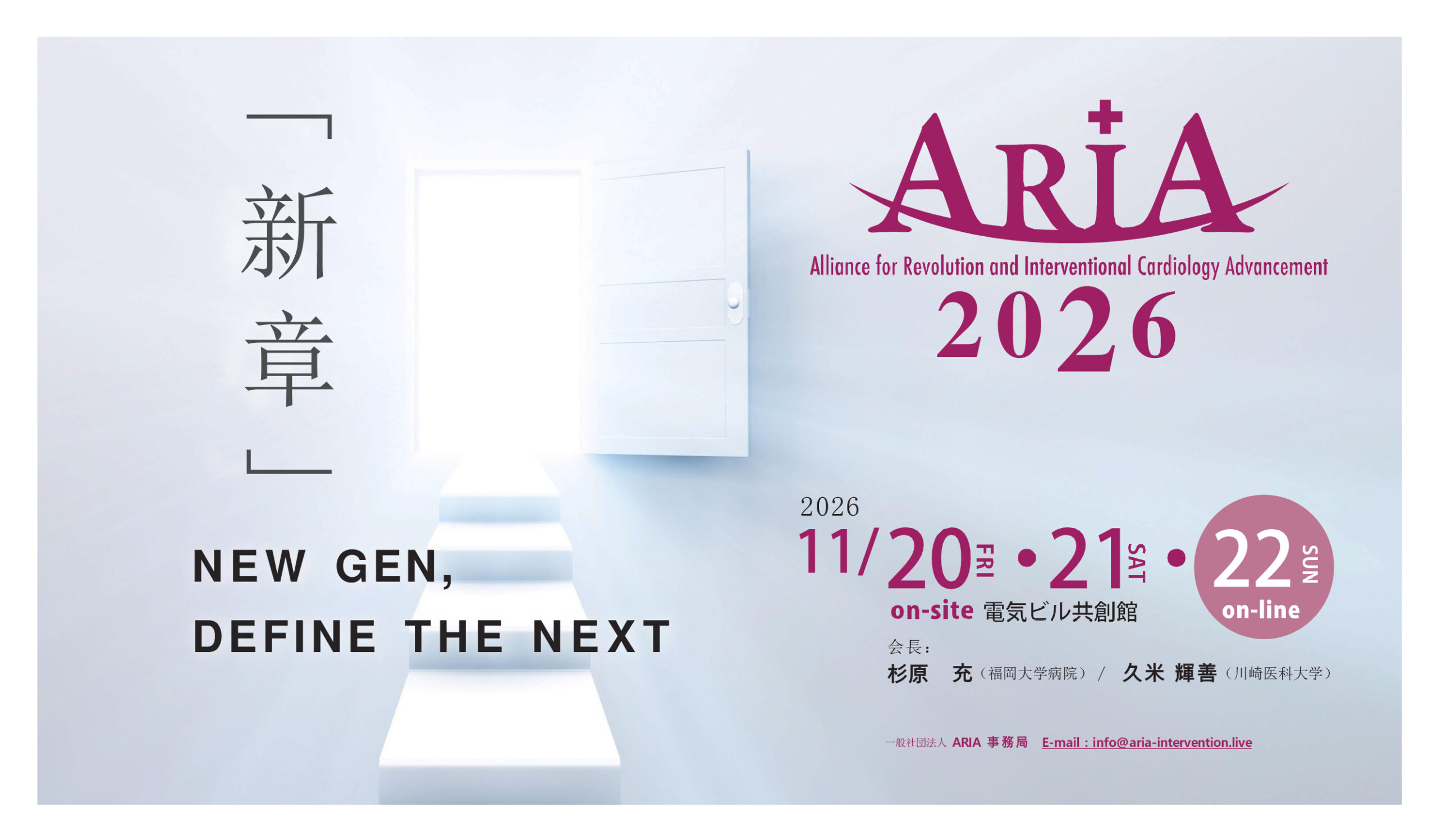 ARIA 2026の開催は、2026年11月20日(金)~21日(土)電気ビル共創館、22日(日)のみ完全オンラインにて開催予定です